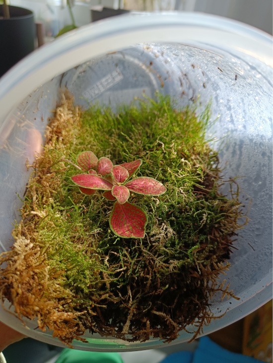 Das zweite Projekt steht auch an: die Pflanzen in meinem Terrarium versorgen: sie werden zu groß und dürfen auch mal durch neue Arten ersetzt werden. Für den Moment habe ich Sagina subulata Sternmoos eingesetzt und bald folgen neue Pflanzen!